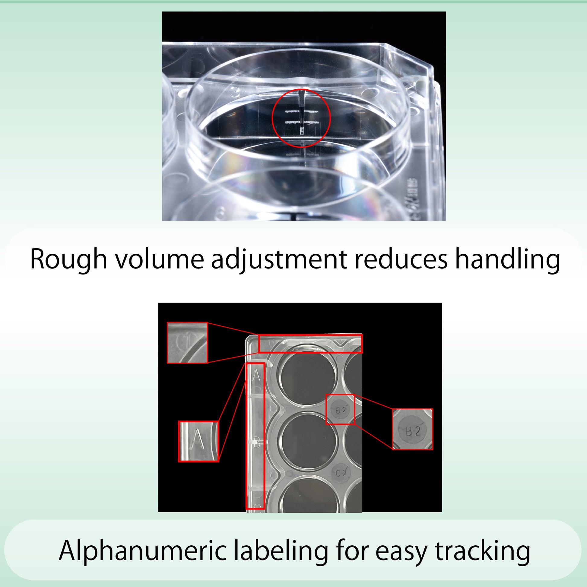 When filled moat surrounding with liquid, it can prevent evaporation of culture medium in outer wells.