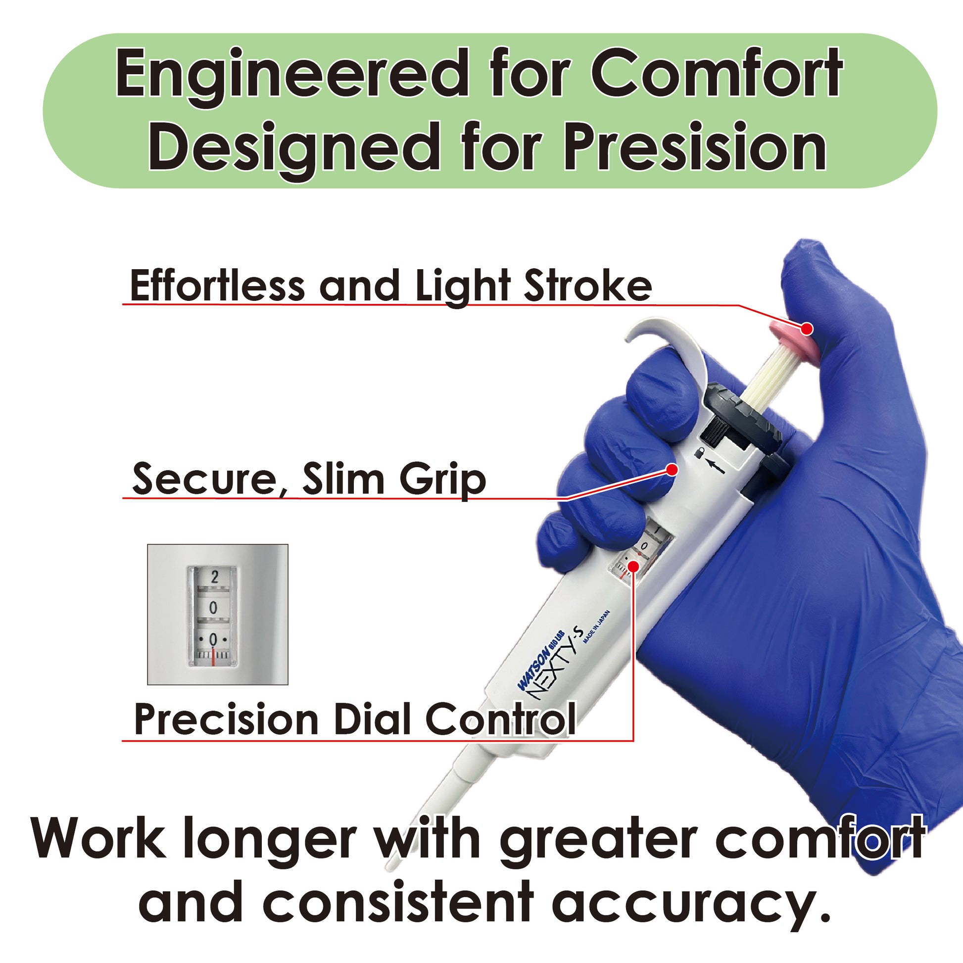 Every aspect of the NEXTY pipette is manufactured in our factory in Japan. From the production of parts, to the final assembly and calibration it is all done inhouse. We also have a calibration, repair and maintenance facility inhouse.